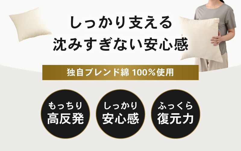 コシのある「もっちり」感。沈み込みすぎない快適クッション 高弾力!もっちり固め ヌードクッション 45cm角 ブレンド綿(側キナリ)1個 [A-20429]