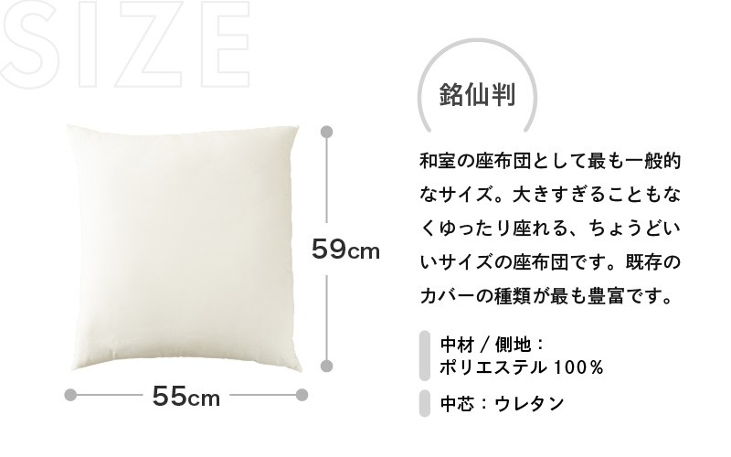 「底付き感、ゼロへの挑戦。」ウレタンと反毛わたの二重構造 ウレタン×高密度反毛わた ハイブリッドヌード座布団(銘仙判55×59cm)(側ポリエステル) [A-20450]