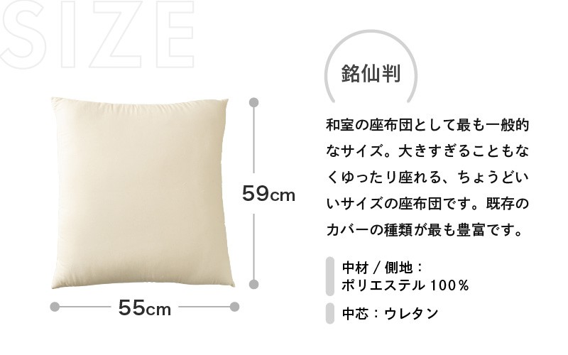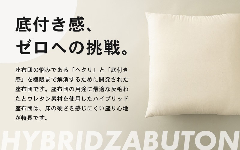 「底付き感、ゼロへの挑戦。」ウレタンと反毛わたの二重構造 ウレタン×高密度反毛わた ハイブリッドヌード座布団(銘仙判55×59cm)(側キナリ) [A-20449]