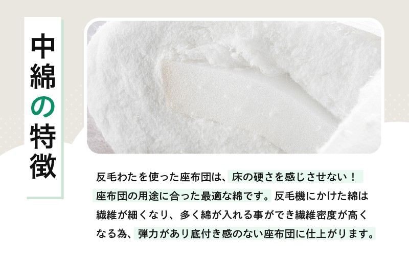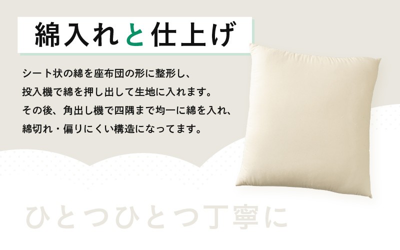 反毛わたを使用した高密度で弾力のある座布団をお届け!