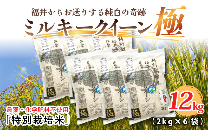 【令和6年産】お米の女王!農薬・化学肥料不使用 特別栽培米 ミルキークイーン極12kg (2kg × 6袋)(白米) [E-2917_01]