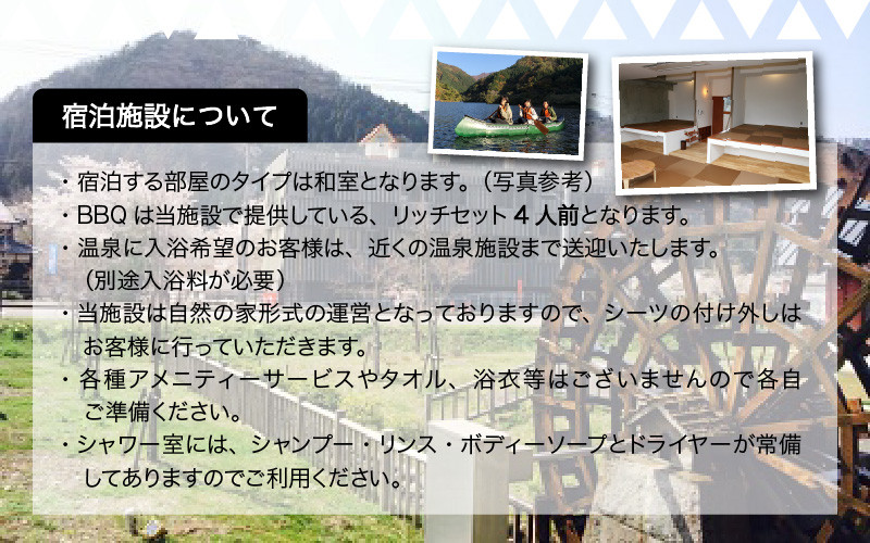 親子でダムカヌーを体験したあと、夕食はバーベキュー! 【ワーケーション利用可能!】北陸でここだけ!カヌー体験 & BBQ(宿泊付き) 親子4名様 [N-3601]