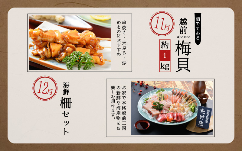 さかなや「たけ庄」が贈る、贅沢海鮮定期便! 【12ヶ月定期便】越前三国の旬を直送 「お楽しみ! 海鮮定期便 <極>」 [S-1602]