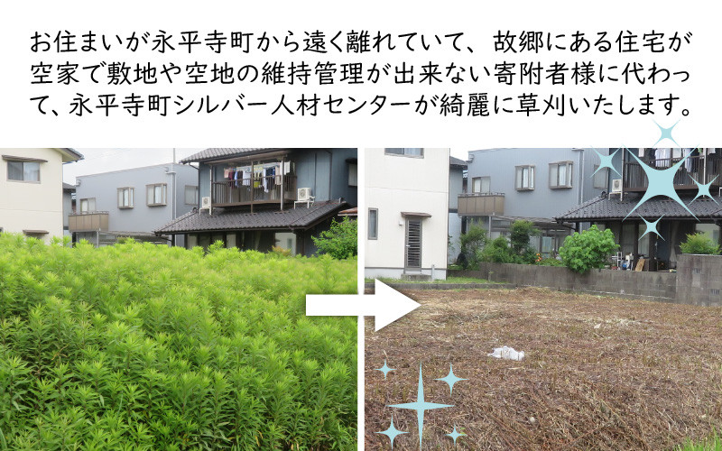 故郷にある空家の住宅を維持管理いたします! 永平寺町 空地草刈代行サービス A [B-029005]