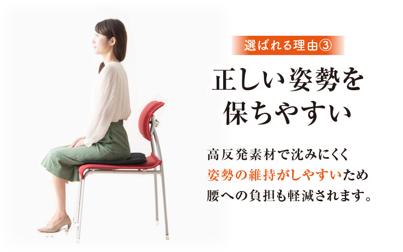 高反発素材で沈みにくく姿勢の維持がしやすいため腰への負担も軽減されます。