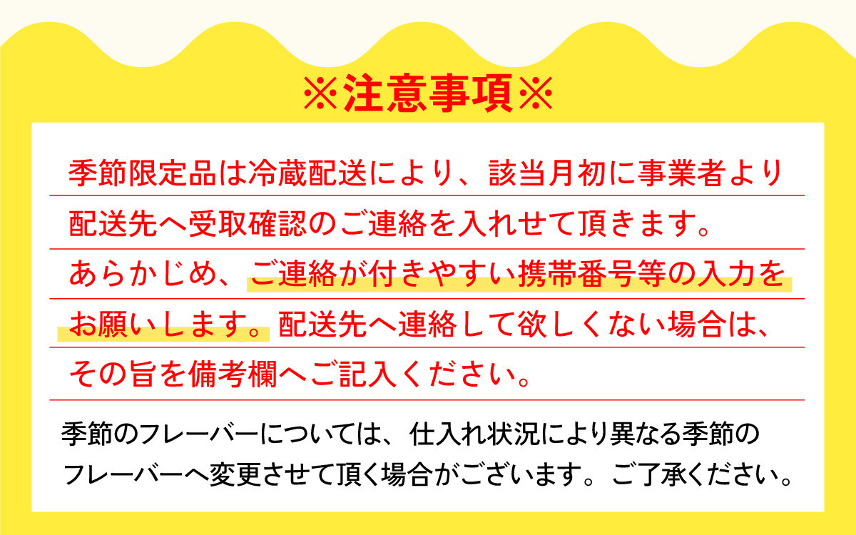 ※季節限定品は冷蔵配送により、該当月初に事業者より配送先へ受取確認のご連絡を入れせて頂きます。