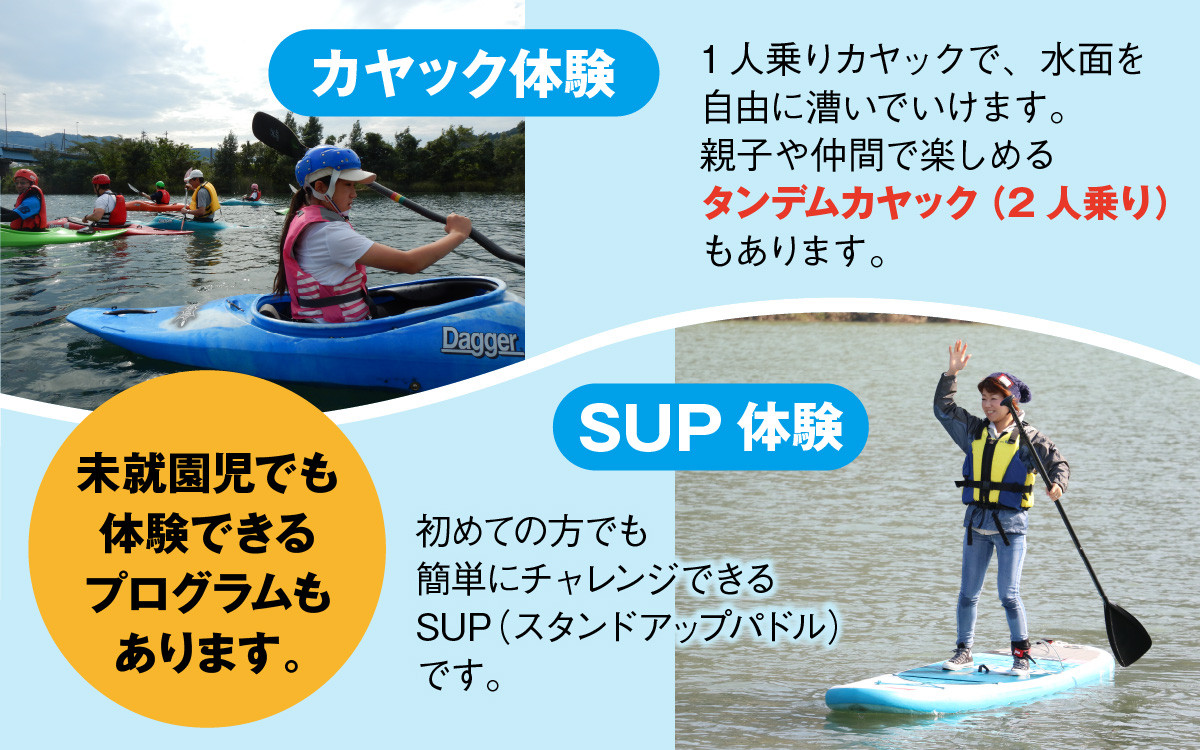 九頭竜川の風景を見ながらカヤック・タンデムカヤック・SUPを楽しめます カヤック(1人乗り)・タンデムカヤック(2人乗り)・SUP(1人乗り)体験 [B-060001] / 永平寺 福井 北陸 体験 家族旅行 観光