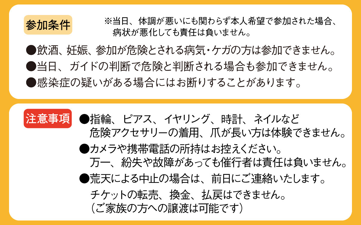 当日、ガイドの判断で危険と判断される場合も参加できません。