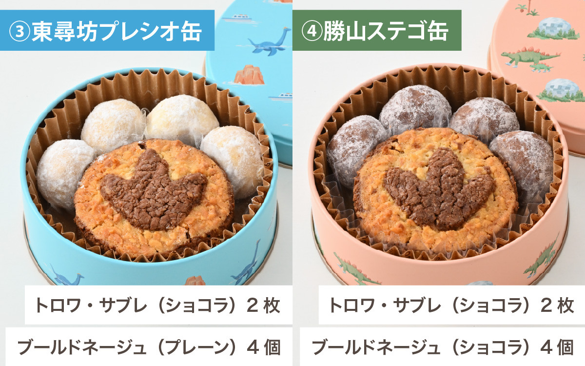 4.(勝山ステゴ缶) トロワ・サブレ(ショコラ)2枚 ブールドネージュ(ショコラ)4個