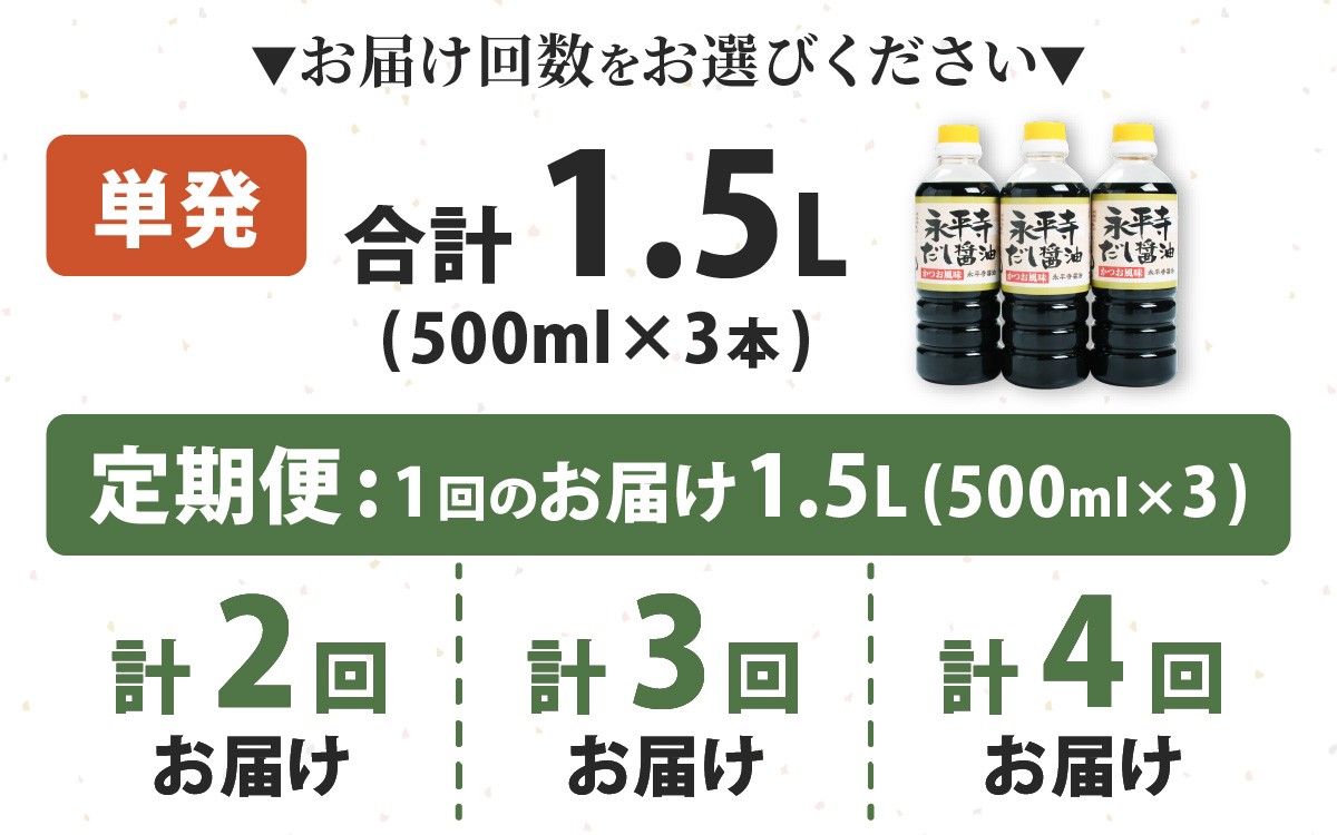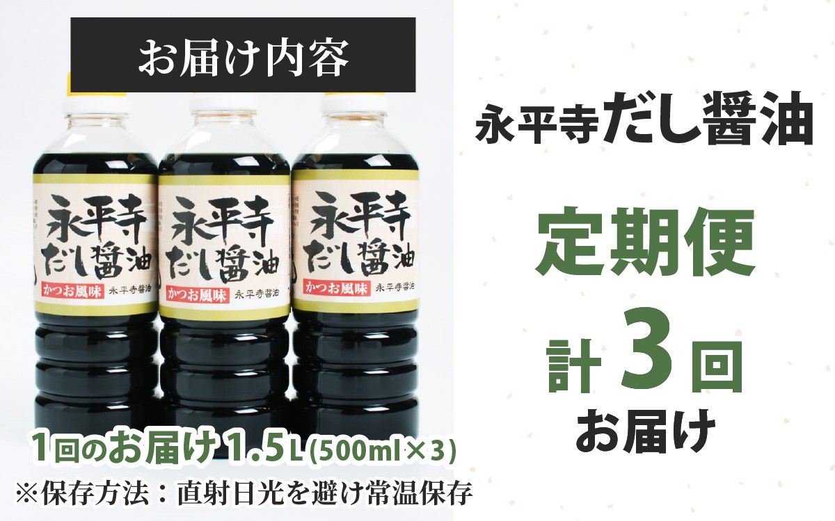 | 容量 | 【3回お届け】 永平寺だし醬油 500ml×3本セット_定期便 計3回 お届け |