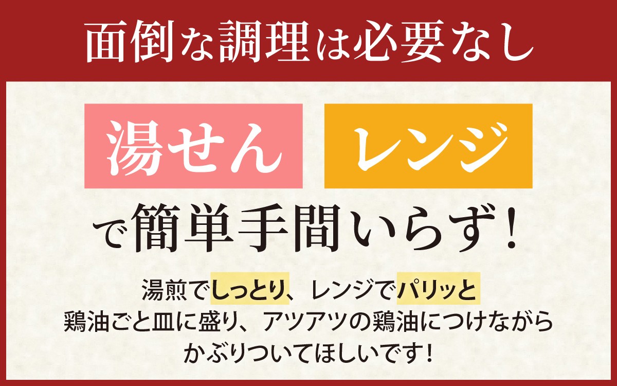 鶏油ごと皿に盛り、アツアツを鶏油につけながらかぶりついてほしいです!