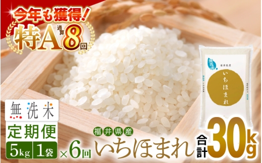 チョイスPayポイントと交換できる品 特A通算8回獲得!コシヒカリ生誕地からコシヒカリを超える新ブランド米が誕生! 特A通算8回!お米 令和7年産 定期便 6回 いちほまれ 5kg × 6回(計30kg)福井県産【米 コメ kome 6ヶ月連続 計30キロ 精米 白米】 [e27-i008]