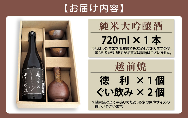 銘酒「飛鳥井」純米大吟醸 720ml & 越前焼(徳利1個ぐい飲み2個…