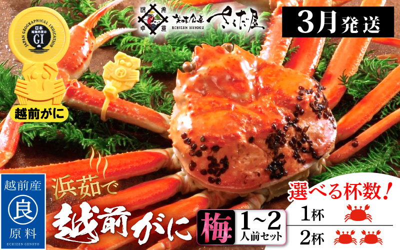 チョイスPayポイントと交換できる品 越前がには明治より続く献上蟹。 水揚げ後、越前塩ですぐに浜茹でしてお届けします! 越前がに本場の越前町からお届け!越前がに 浜茹で≪梅セット≫1~2人前 かに酢 かにの食べ方しおり かにスプーン付き【かに カニ 蟹】【福井県 越前町 雄 ズワイガニ ボイル 冷蔵 越前ガニ 越前かに 越前カニ ずわいがに ずわい蟹 かに カニ 蟹】【選べる杯数!1~2杯】【3月発送分】希望日指定可 備考欄に希望日をご記入ください [e04-x009_03]