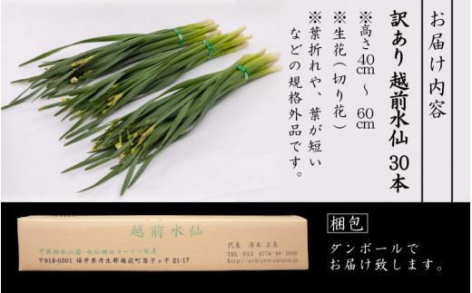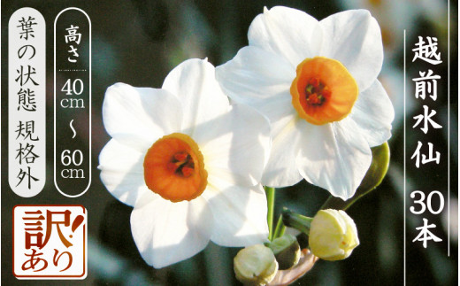 地域の生産者応援の品 チョイスPayポイントと交換できる品 越前海岸に咲く可憐な花。日本三大水仙郷「越前海岸」で栽培されました。 【先行予約】【訳あり】お花 越前水仙「葉折れ・葉切れ混在」高さ40~60cm × 30本(生花・切花)【葉の状態 規格外】【2025年12月上旬以降順次発送予定】【花 水仙 福井県産】 [e39-a021]