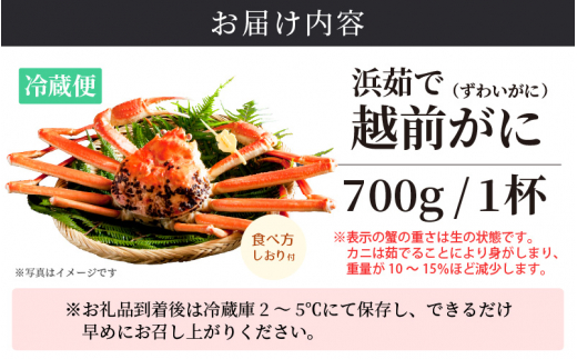 チョイスPayポイントと交換できる品 越前町で水揚げされた本場の越前がに!初めてでも安心の食べ方しおり付き! 越前がに本場の越前町からお届け! 越前がに 浜茹で 小サイズ(生で700g以上) × 1杯 食べ方しおり付き【かに カニ 蟹】【福井県 越前町 雄 ズワイガニ ボイル 冷蔵 越前ガニ 越前かに 越前カニ ずわいがに ずわい蟹 かに カニ 蟹】【2月発送分】希望日指定可 備考欄に希望日をご記入ください [e14-x005_02]
