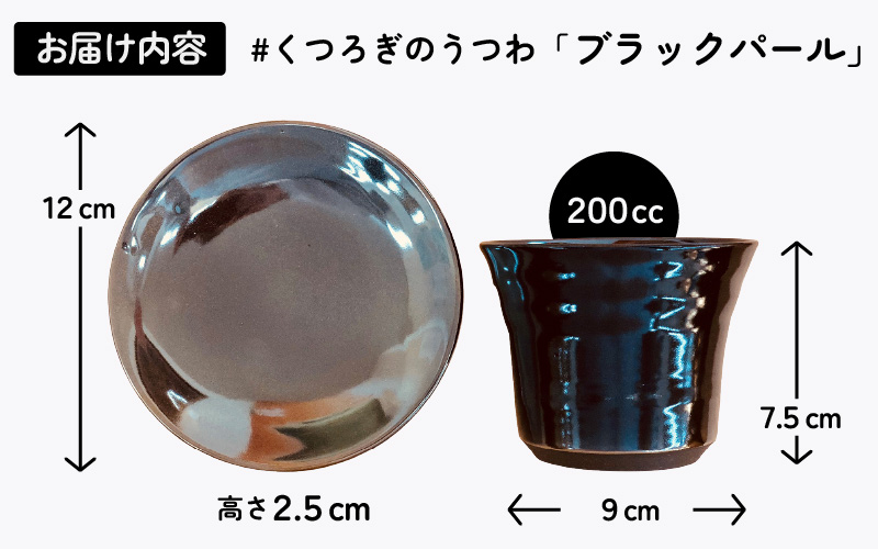 | 容量 | ■内容量 / 原産地 / 製造地 / 製造者 #くつろぎのうつわ「ブラックパール」 【1】カップ × 1個 サイズ:径9cm × 高さ7.5cm(200cc) 【2】皿 サイズ:径12cm × 高さ2.5cm 種類:陶器 原産地:陶土(越前町産) 製造地:若狭町 製造者:やわらぎ工房(清水和也) |