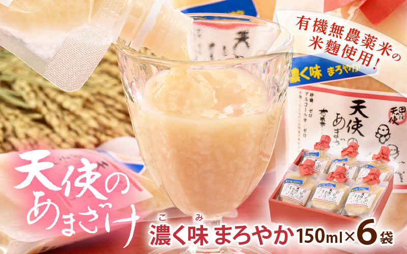 手軽に携帯できる発酵食品飲料!有機無農薬米の米?使用。ノンアルコール濃く味甘酒♪ [e10-a010] 有機無農薬米の米麹100%「濃く味(こくみ)まろやか 天使のあまざけ」 150ml × 6袋【甘酒 ストレートタイプ ノンアルコール 発酵食品飲料 小分け パウチ 詰め合わせ ギフト 福井県】