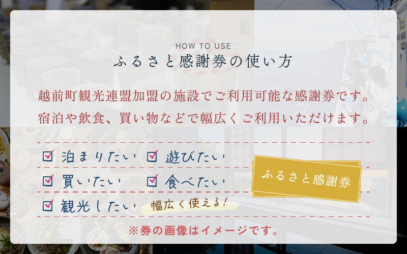 ●本券は(一社)越前町観光連盟加盟の施設で、宿泊・飲食・買い物・施設入館など幅広くご利用可能です。