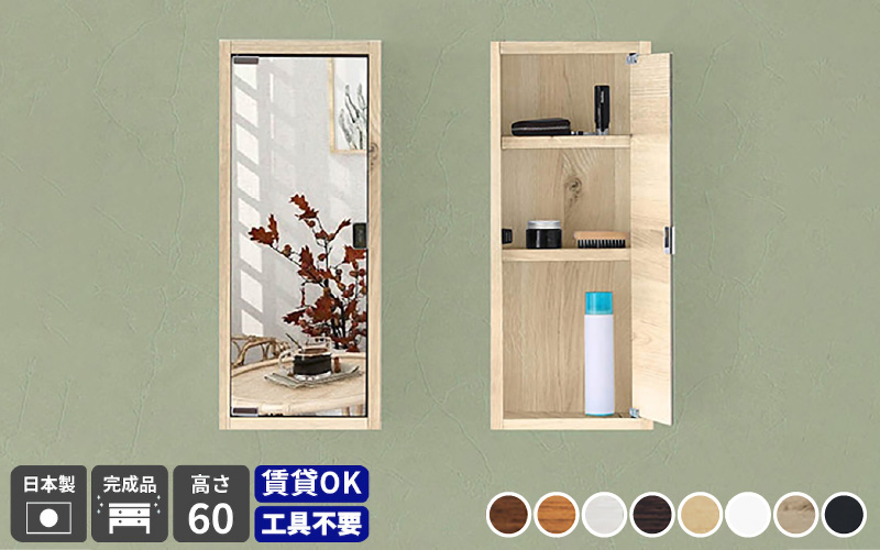 チョイスPayポイントと交換できる品 片手でポンッと開閉できるミラー扉付き。壁を有効活用できるarneのウォールラック [e55-e003_03] 鏡付き ウォールラック WB-DXミラーH-six薄型「木目」ワンプッシュで開閉できるミラー扉付き!【日本製 完成品 家具 インテリア ウォールシェルフ 壁掛けラック 北欧風 木製 収納】【カラー:ホワイトウッド】