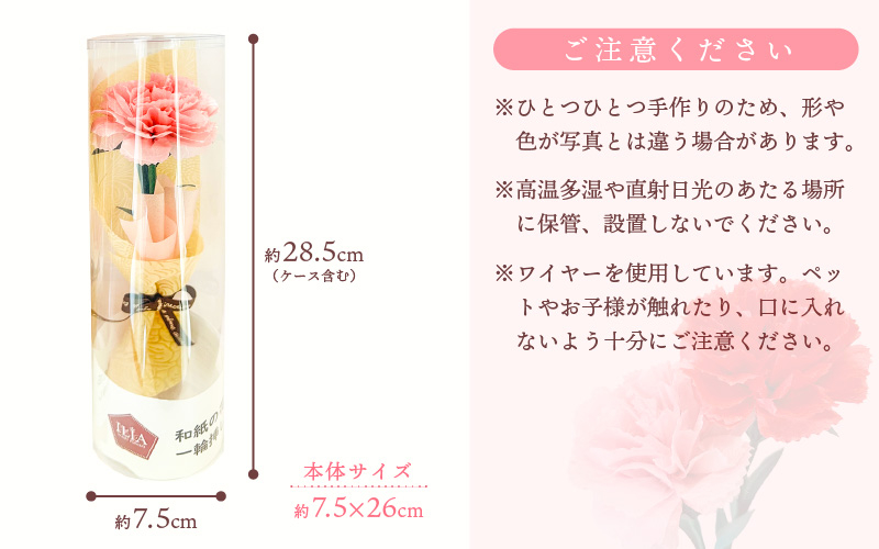 作り物とは思えない高品質で美しいカーネ―ションは、和紙特有の温かみや繊細さが感じられます。