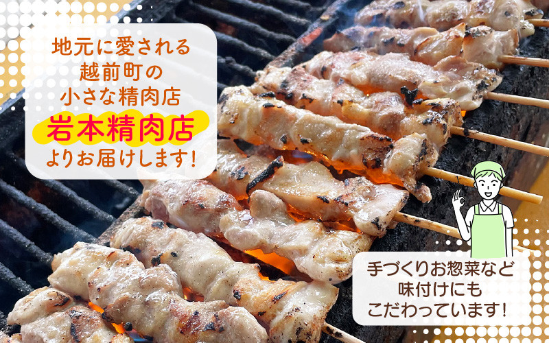 越前町内にて鶏肉に味付けをして串にさし焼き加工して返礼品としている