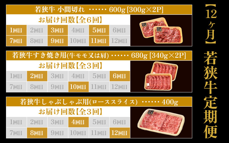 定期便≪12ヶ月連続お届け≫肉好き満足!若狭牛 計6.8kg