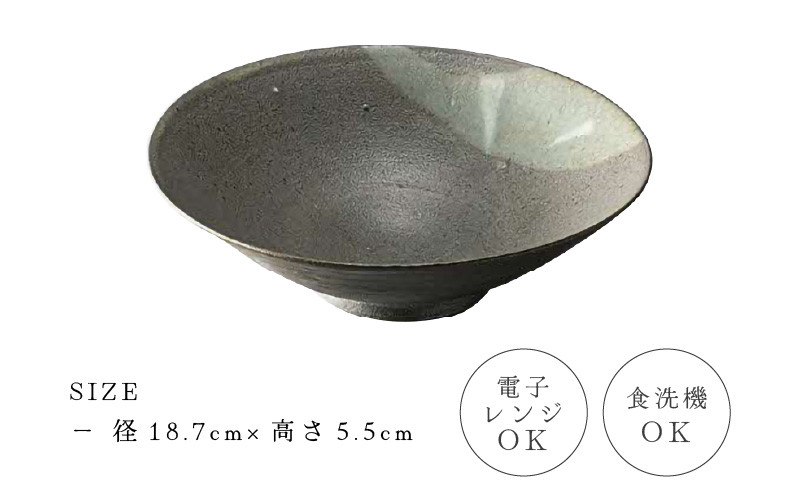 シックな色合いが蕎麦はもちろん、パスタやスープ、チャーハンなど料理を選ばずお使いいただける器です。