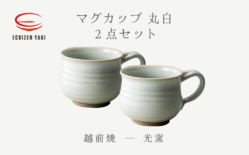 チョイスPayポイントと交換できる品 現代の名工が制作した軽く持ちやすい、普段使いのマグカップです。 [e25-b015] 【越前焼】マグカップ 丸 白 2点セット 光窯【 コーヒーカップ ティーカップ スープカップ マグ 300ml かっぷ ホワイトおしゃれ 食卓 食器 ギフト うつわ 電子レンジ 食洗機 現代の名工 工芸品 陶器 】