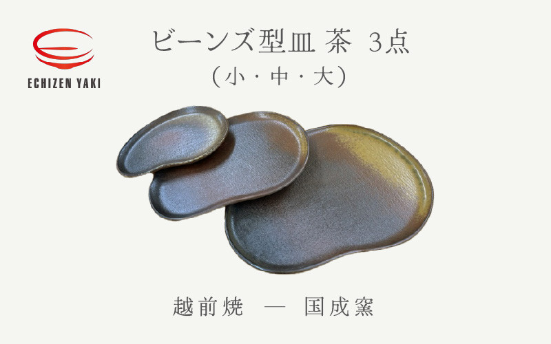 チョイスPayポイントと交換できる品 可愛いビーンズ形の皿を用途に合わせた3サイズをセットに。 [e25-a061] 【越前焼】3点セットビーンズ型皿茶 小 ・タタラビーンズ皿 茶 中・ 大 国成窯 【プレート 食器 ギフト うつわ 電子レンジ 食洗機 工芸品 陶芸作家 陶器 】