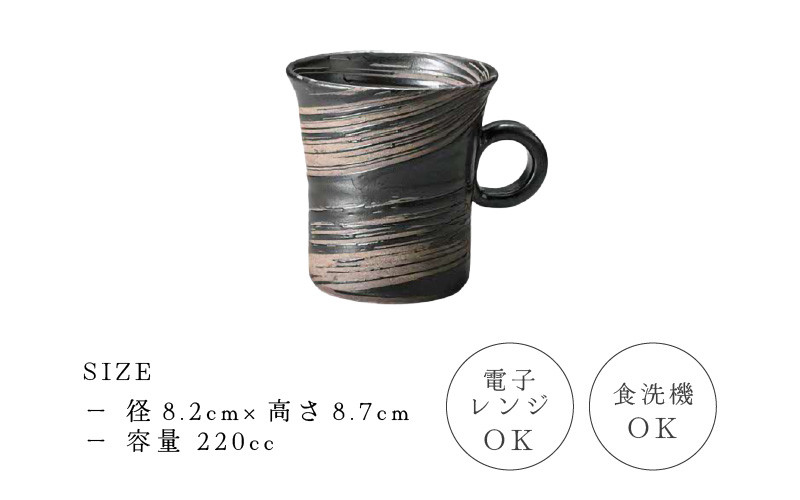 チョイスPayポイントと交換できる品 釉薬の黒と土の風合いのコントラストが人気のマグカップです。 [e25-a081] 【越前焼】マグカップ ブラック あかね陶房【 コップ コーヒーカップ ティーカップ スープカップ マグ 220ml かっぷ おしゃれ 食卓 食器 ギフト うつわ 電子レンジ 食洗機 陶芸作家 工芸品 陶器 】