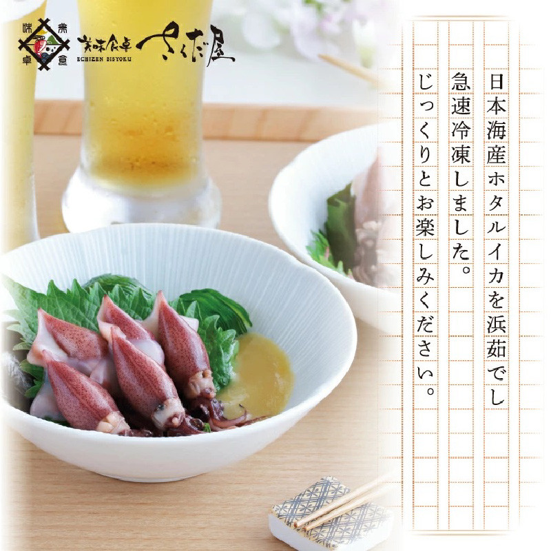 日本海で獲れたホタルイカを職人が浜茹でしました。茹でたてを急速冷凍して発送!