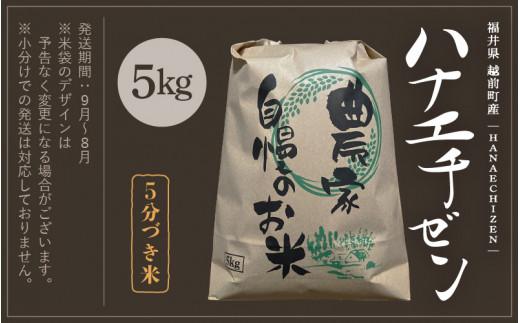 チョイスPayポイントと交換できる品 粘り少なめ、粒コシ良く、さっぱりとした味わいが特徴。ファンも多いお米です! 【先行予約】【令和7年産 新米】旨いご飯!お米 ハナエチゼン 5kg 「5分づき米」 福井県産【米 はなえちぜん 華越前 人気品種 ブランド米 5キロ 精米 白米 玄米 5ぶづき米 おにぎり うまい ぶつき米 】【2025年9月中旬より順次発送】 [e71-a006_02]