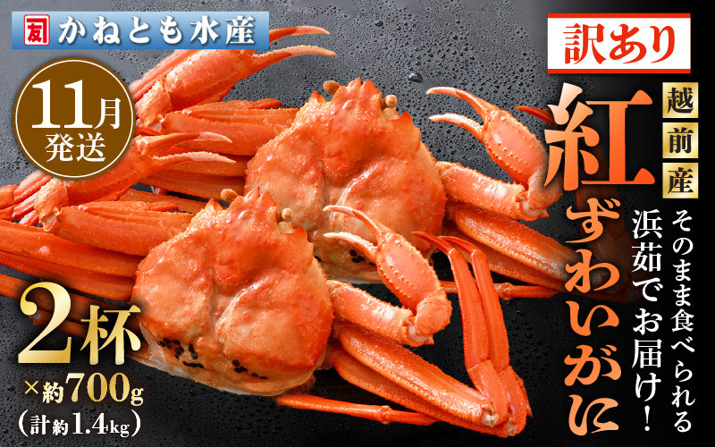 地域の生産者応援の品 チョイスPayポイントと交換できる品 越前町から茹でたてを直送!甘味たっぷり!食べ応え充分!訳ありでも味・品質は同じ! 【訳あり】≪浜茹で≫越前産 紅ずわいがに 約700g × 2杯 食べ方しおり付【紅ズワイガニ カニ かに 蟹 姿 ボイル 冷蔵 福井県】【11月発送分】 [e14-x025_11]