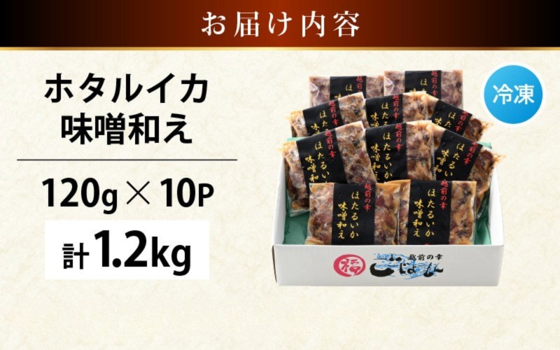 チョイスPayポイントと交換できる品 解凍するだけ!味噌和え調理済!食べたい時に解凍後、調理なしでお召上りいただけます 調理済 解凍するだけ ! 越前町産 味噌あえ ホタルイカ たっぷり 計1.2kg(120g × 10P)小分け 冷凍 ほたるいか 全国トップクラスの漁獲量【ボイル 茹で 調理すみ 味付き みそ ミソ 日本海 いか イカ 烏賊 福井県 魚介 海鮮 惣菜 さかな おつまみ 酒の肴 お取り寄せ グルメ 宅飲み 小分け 日常使い】 [e15-a046]