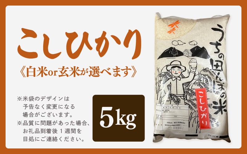 令和7年産 福井県産こしひかり米 5kg×1袋