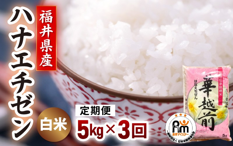 チョイスPayポイントと交換できる品 毎月楽しめる定期便。3ケ月連続でお届けします 【新米令和7年産 米】 定期便 ≪3ヶ月連続お届け≫ ハナエチゼン 5kg × 3回(合計15kg)精米 福井県越前町産【白米 5キロ 華越前 はなえちぜん お米 ごはん 人気品種 こしひかり 血統品種 kome】 [e66-d003]