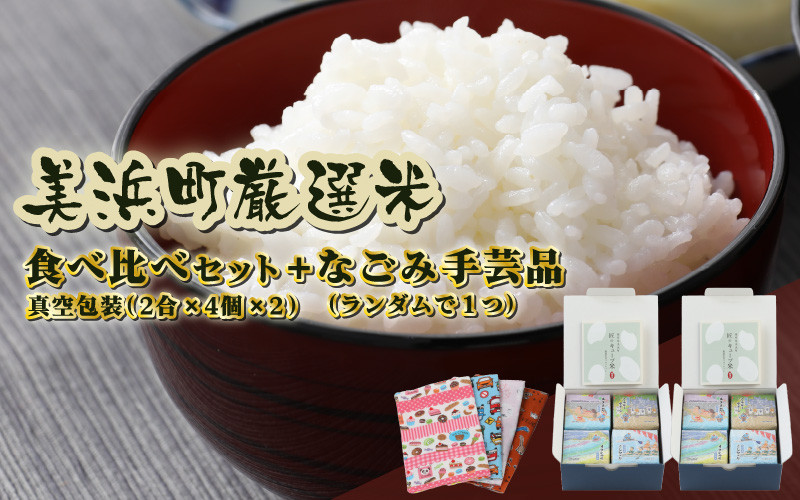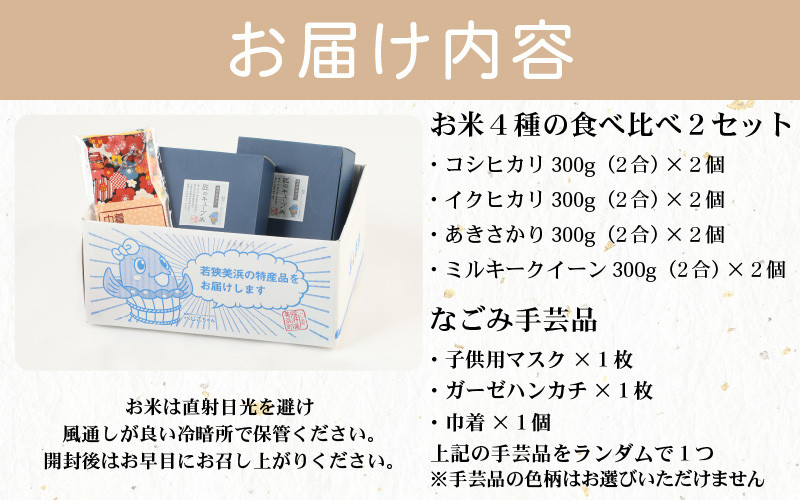 美浜町米農家4軒の厳選された4品種の食べ比べセットと心を込めて作った小物セット。 美浜町令和6年産厳選米 食べ比べセット 真空包装(2合 × 4種 × 2セット) + なごみ手芸品セット[m12-a012]
