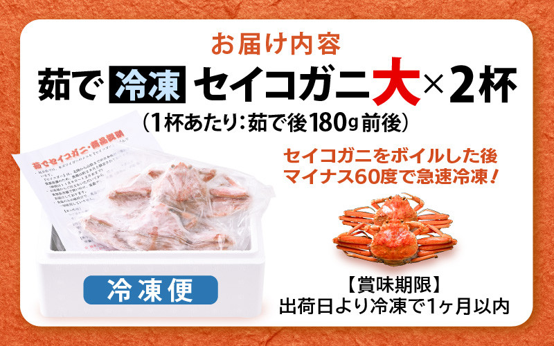 茹で冷凍セイコガニ大×2杯(茹で後180g前後)
