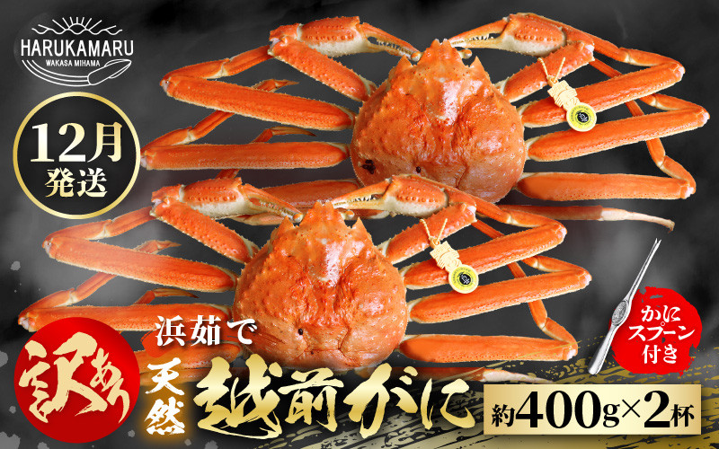 地域の生産者応援の品 福井の冬の醍醐味!越前がにの味を是非味わってみてください。 【先行予約】≪浜茹で≫ 地物!天然!はるか丸厳選!”訳あり”越前がに 約400g × 2杯【2025年12月上旬以降順次発送予定】獲れたて!茹でたてをお届けします![m36-x002_12]