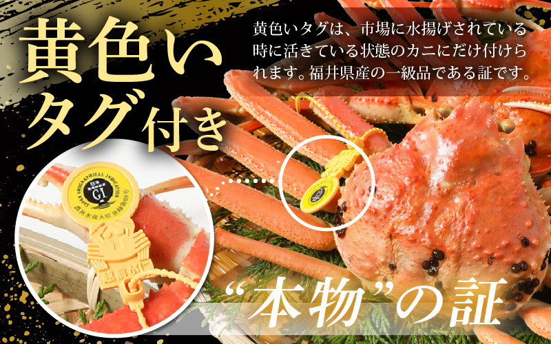 代々継がれる漁師一家の船長が目利きした、水揚げされた※黄色いタグ付き 越前がにを活きたまま運び、新鮮な状態のまま!いい塩梅で!釜茹でした本物の【越前がに】です。