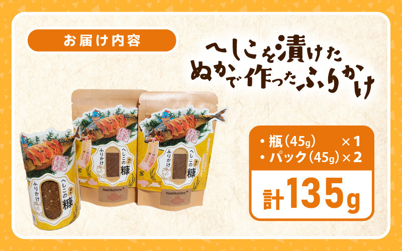 鯖のへしこの旨味がギュッと詰まった極旨の「ぬかふりかけ」が誕生! ★テレビで紹介された【へしこ姫からの贈り物】 へしこを漬けた”ぬか”で作った極旨ふりかけセット【へしこ ふりかけ 美浜 美浜町 名産 福井 伝統 郷土料理 ぬか漬け 糠 発酵 瓶詰め ごはんのお供 おむすび パスタ お茶漬け 調味料】 [m68-a001]
