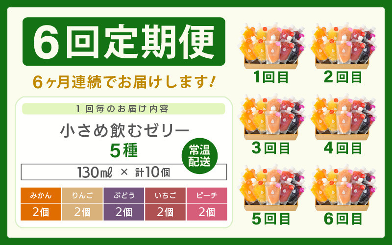 国産ストレート果汁を使った5類のゼリー飲み切りサイズにてお届けします! 定期便 ≪6ヶ月連続お届け≫ 小さめ飲むゼリー 詰め合わせ 5種 (計10個入り) ×6回 みかん ぶどう りんご いちご ピーチ 国産ストレート果汁使用 着色料 保存料 香料 不使用【ギフト 母の日 父の日 こどもの日 敬老の日】 [m01-i001]
