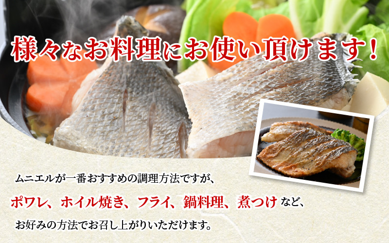 ムニエルが一番おすすめの調理方法ですが、ポワレ、ホイル焼き、フライ、鍋料理、煮つけなど、お好みの方法でお召し上がりいただけます。