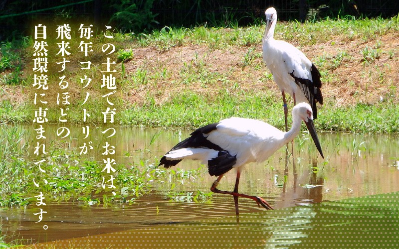この土地で育つお米は、毎年コウノトリが飛来するほどの自然環境に恵まれ、旨味と甘みが特徴です。