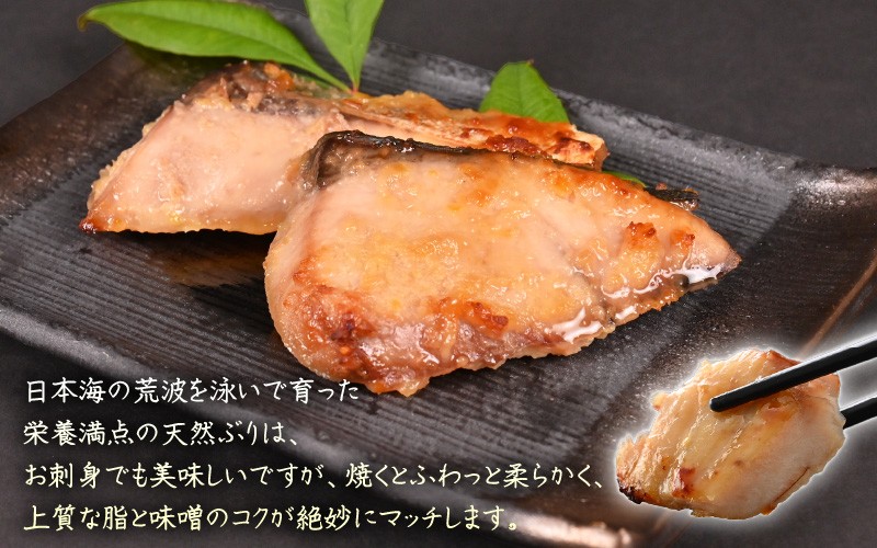 若狭湾で水揚げされた新鮮な天然ぶりを、厳選した西京味噌にじっくり漬け込みました。