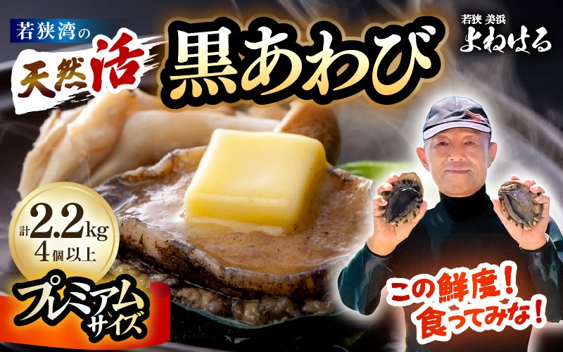 若狭湾で獲れた鮮度抜群の天然黒アワビお届けします。 【先行予約】【数量限定】日本海若狭湾の 天然 活黒アワビ プレミアムサイズ 計2.2kg(4個以上)鮮度抜群!【2026年3月より順次発送予定】 刺身 お造り バター焼き BBQ 入手困難 あわび アワビ 鮑 クロアワビ 黒あわび [m17-p003_03]