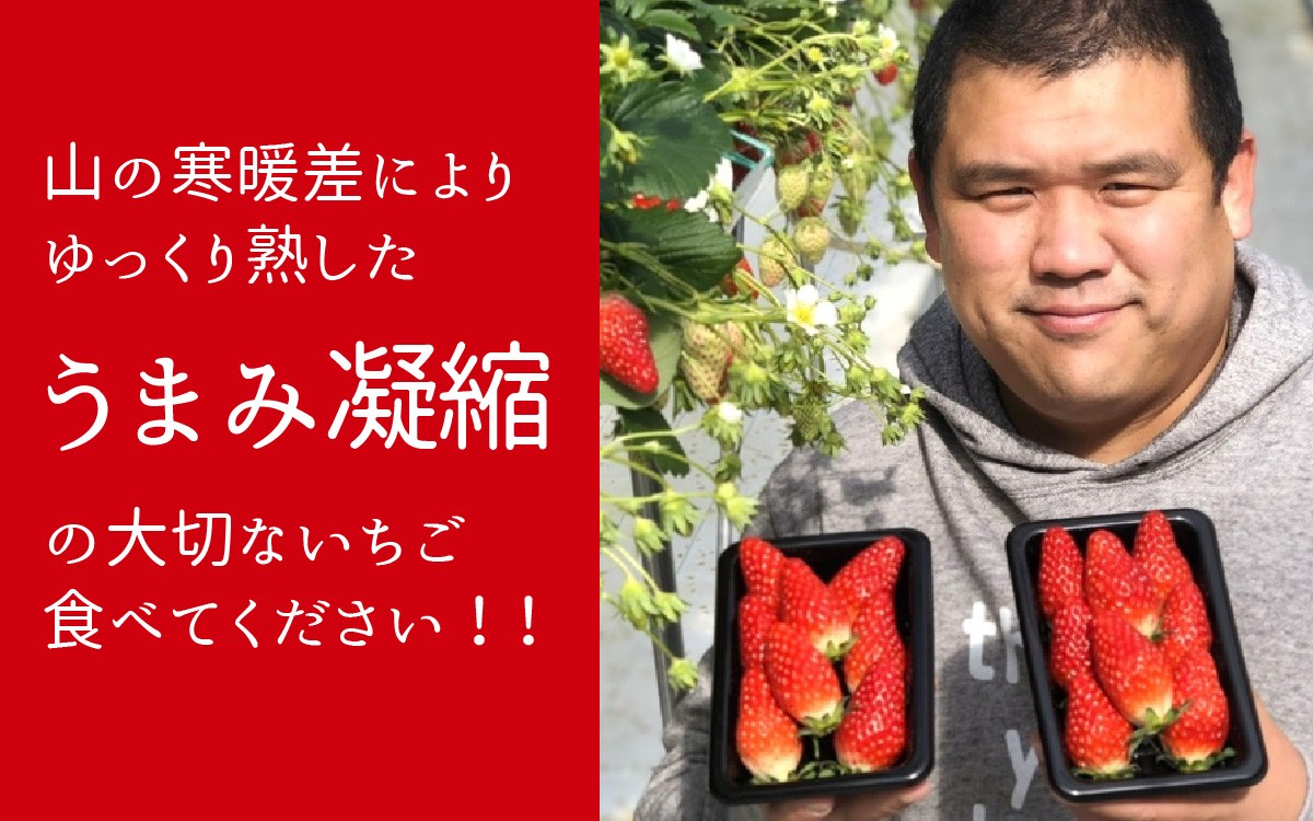 山の上で栽培することで、山の寒暖差により、いちごは通常よりゆっくり熟していきます。