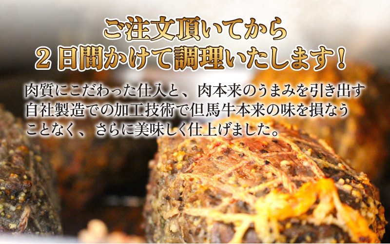 ご注文頂いてから2日間かけて調理いたします。肉質にこだわった仕入と、肉本来のうまみを引き出す自社製造での加工技術で但馬牛本来の味を損なうことなく、さらに美味しく仕上げました。