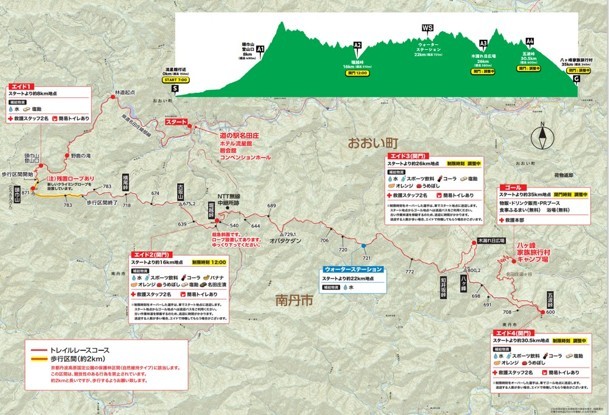 レースでは、「道の駅名田庄」周辺をスタートし、名田庄トレイルの最高峰「頭巾山」、そして「堀越峠」「知井坂峠」「八ヶ峰」「五波峠」を経由し、ゴールの「八ヶ峰家族旅行村」を目指します。